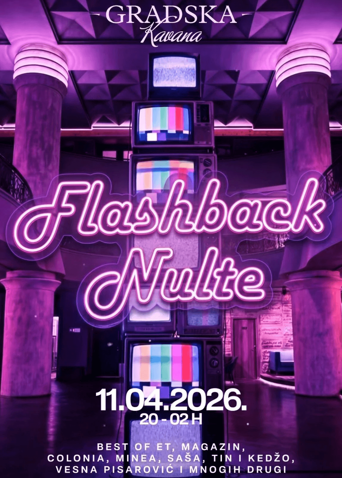Vremeplov is a Croatian party concept centered on nostalgic throwback hits from the 90s, 2000s, and early 2010s, known for its high-energy atmosphere, themed visuals, and DJ sets in venues across Zagreb and coastal cities, attracting audiences eager to relive iconic party eras.